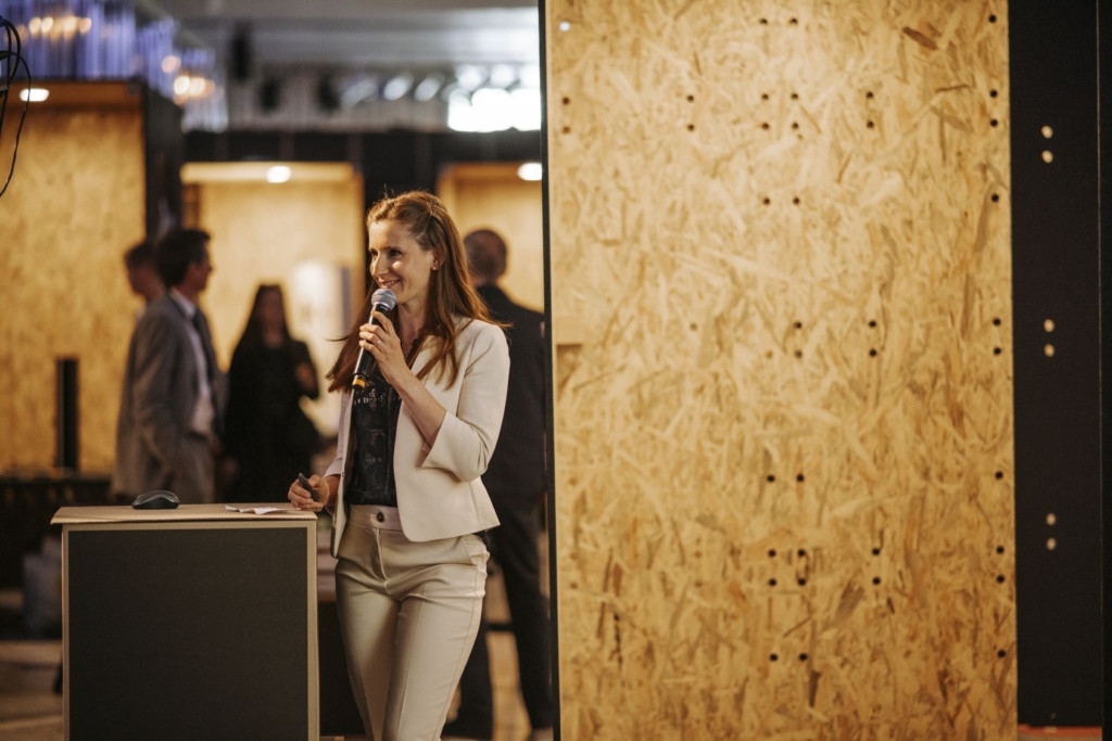 V nekoliko umaknjenem drugem delu hiše se nahajajo spalnica z garderobo, kopalnica, soba za goste in utility. Spalnica pomirja s toplimi toni, mehkimi materiali in zaveso, ki nežno zastira svetlobo, medtem ko kombinacija naravnih materialov in mozaičnih ploščic v zlatih tonih v kopalnici pričara občutek domačega wellnessa